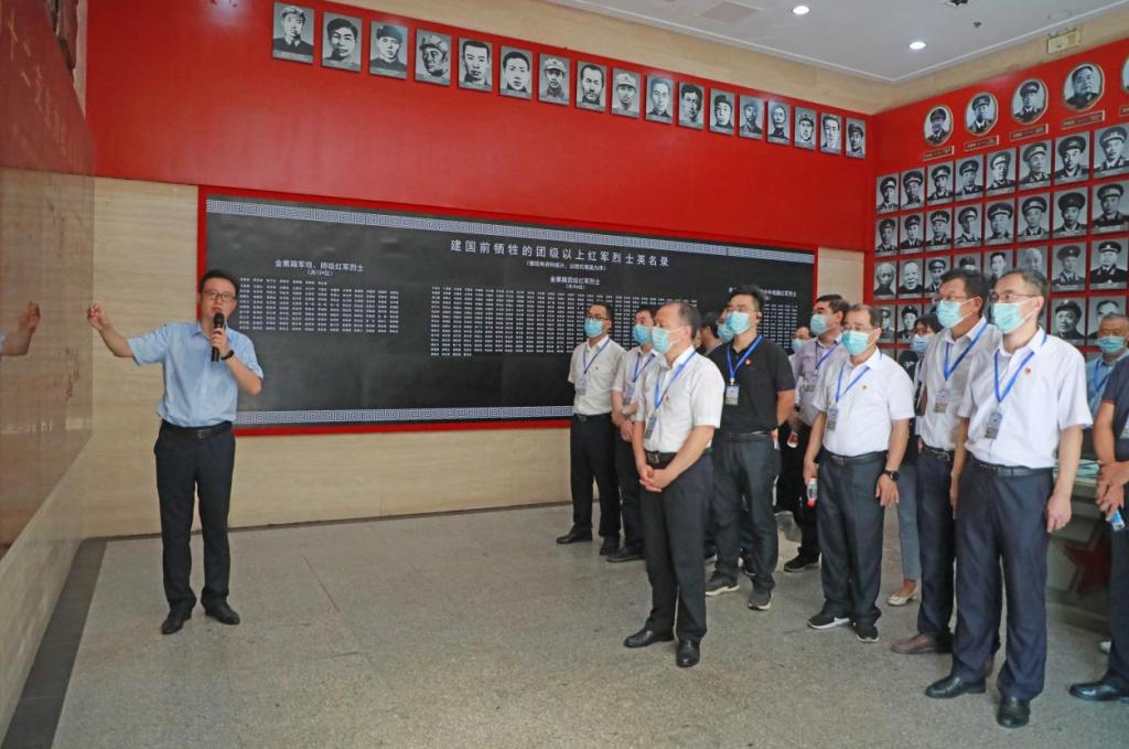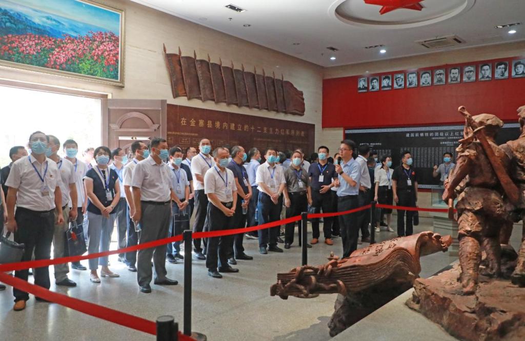 之后,在讲解员的带领下,大家沿着习近平总书记的足迹,怀着万分崇敬的心情,依次参观了金寨红军纪念堂、红军烈士陵园、金寨县革命博物馆、洪学智将军纪念馆等。纪念堂内,陈列展示的金寨籍革命先烈名单、共和国将领的照片以及一支支发源于金寨的人民革命队伍介绍等,令人深受震撼。“青山有幸埋忠骨”。烈士陵园内,隐隐青山之中,安葬着洪学智、林维先、滕海清、詹化雨、陈祥、余明等百余名红军将士的铮铮铁骨与忠魂。金寨县革命博物馆由序厅、金寨革命史展、将军展等部分组成。展厅内,展陈内容按照革命历史的各个时期,分组列题、史物结合,形象展示了1921年至1949年金寨革命历史。28年红旗不倒,2次革命武装起义,12支红军队伍,10万英雄儿女,59位开国将军……一件件藏品、一个个名字、一桩桩动人故事,让沉寂的英雄事迹再现光辉,让英烈精神永世传承。“金寨儿女多壮志,血沃中华矗丰碑”。行走在纪念馆内,徐海东、洪学智、蒋光慈、陈先瑞、皮定均等一大批革命先辈,热爱人民、心系人民、服务人民,坚持“个人得失置度外,革命理想高于天”的光辉事迹,带给大家以心灵的震撼和精神的洗礼。大家认真瞻仰着一件件红军革命历史文物及照片,专注聆听着讲解员对红军革命斗争历史的详细解说,深刻感悟着土地革命、抗日战争、解放战争等不同革命时期金寨这片土地上的革命历史和感人事迹,仿佛置身于抗战期间烽火燎原、波澜壮阔的历史画卷。全体学员接受了一次弥足珍贵的红色教育、一场深刻的精神洗礼、一堂鲜活的生动党课。大家真切感受了金寨的光辉历史,感悟共产党员的初心使命、为国为民的赤子情怀,再次受到了精神上的洗礼,凝聚了接续奋斗的精神力量。 一致表示,饮水思源,缅怀先烈,英魂虽逝,精神永驻,我们一定要继续传承红色基因,铭记初心使命,赓续共产党人精神血脉,像习近平总书记指出的那样,“沿着革命前辈的足迹继续前行,把红色江山世世代代传下去。”