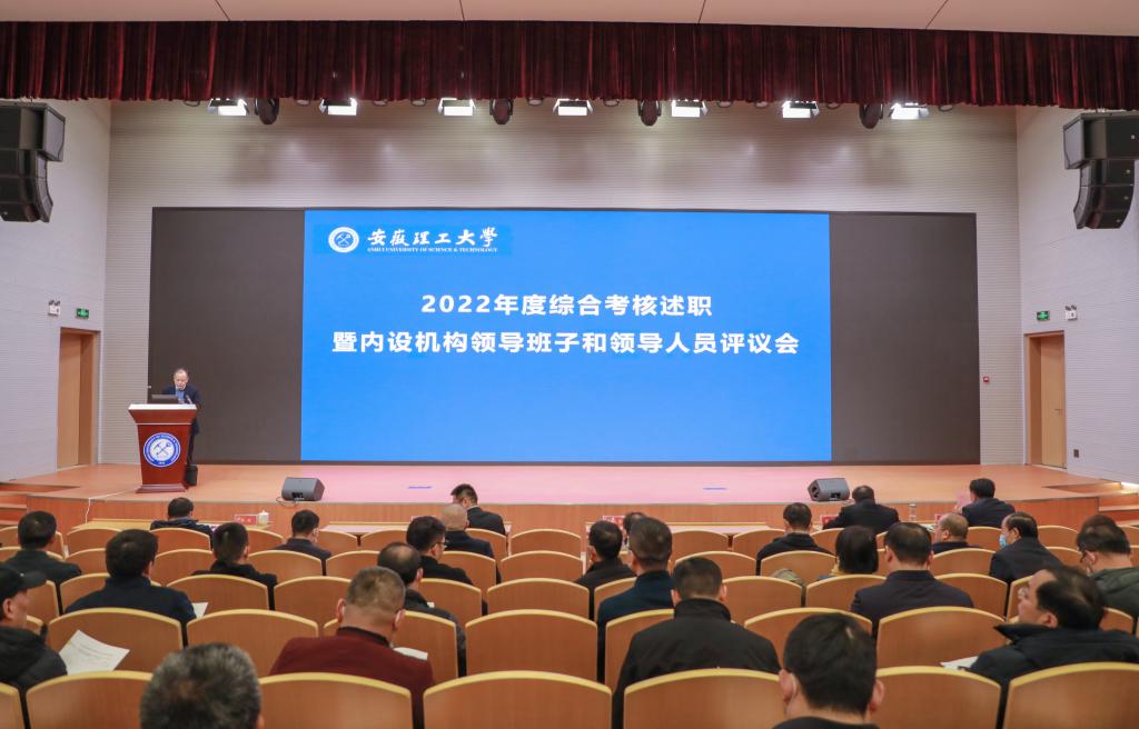 2月11日,学校在舜耕会堂召开2022年度综合考核述职大会暨内设机构领导班子和领导人员评议会。校党委书记郭永存主持会议并讲话。在校校领导余玉刚、宫能平、鲁超、王献余参加会议。