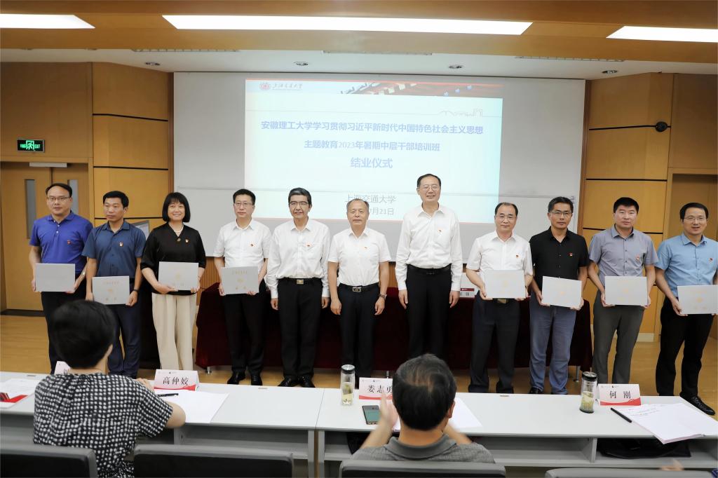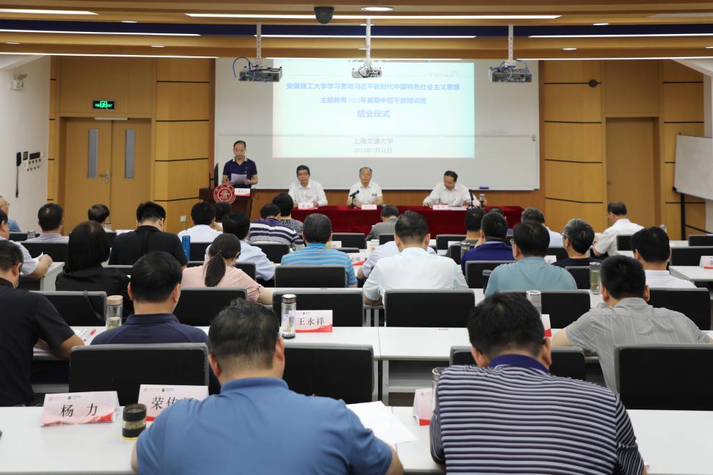 7月21日下午,学校学习贯彻习近平新时代中国特色社会主义思想主题教育2023年暑期中层干部培训班在上海交通大学圆满结束。校党委书记郭永存出席结业式并作总结讲话,上海交通大学党委常务副书记顾锋致辞,校党委常委、副校长董雨主持结业式。